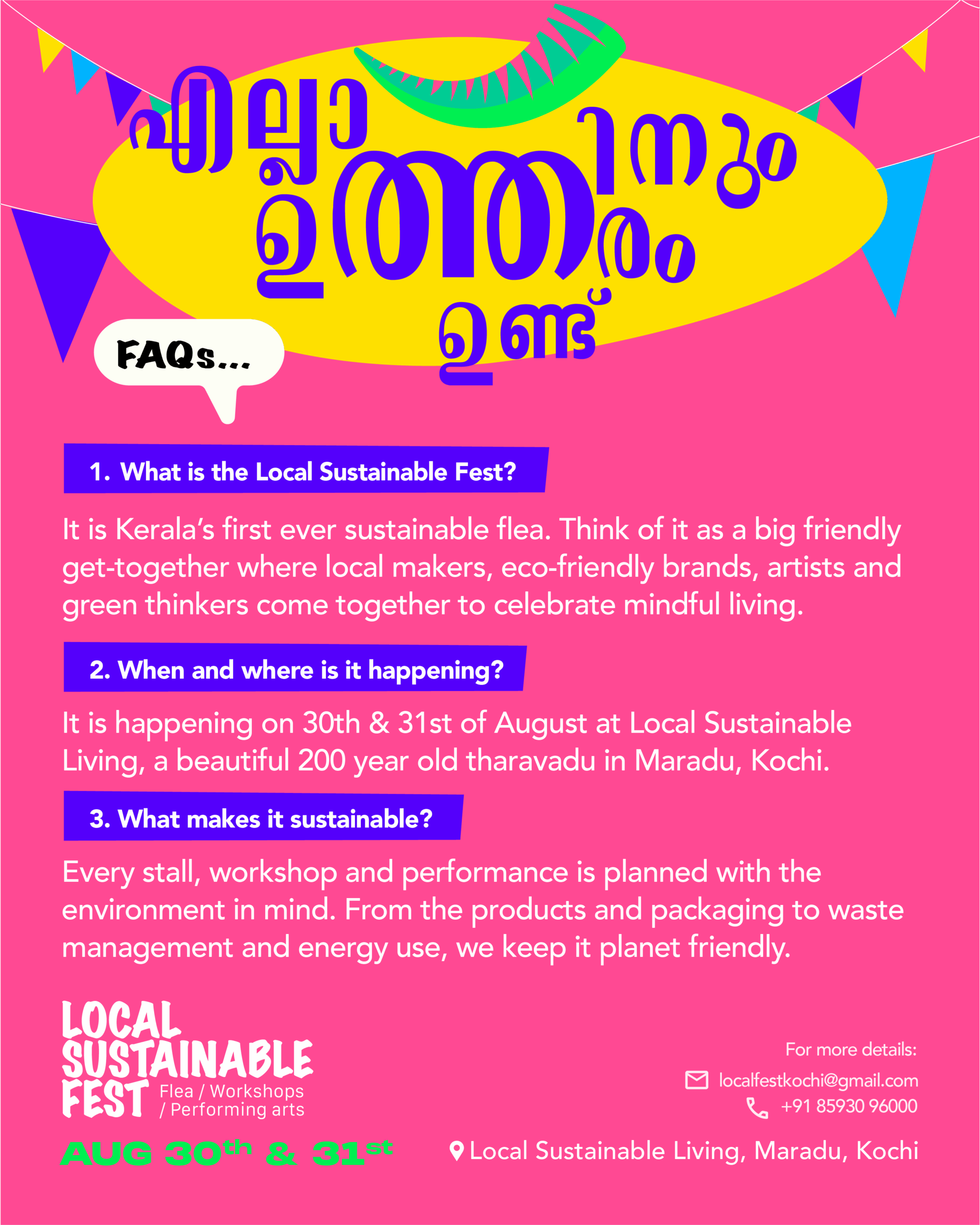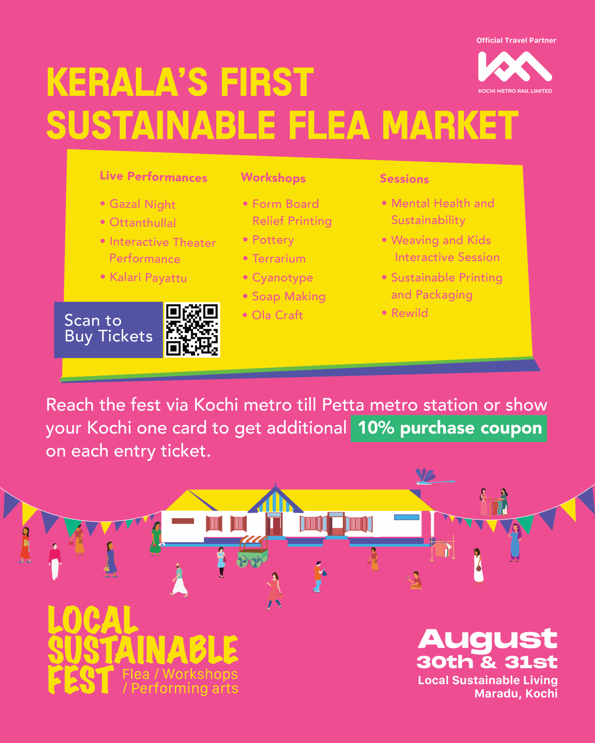 A space to celebrate local talent, fair trade, and mindful living. Flea, music, art, workshops and community. At a 200-year-old Tharavadu in Maradu, Kochi